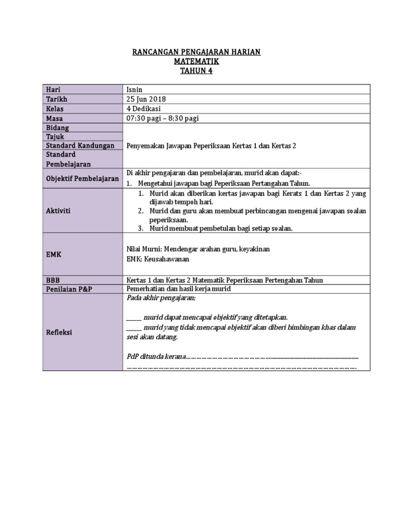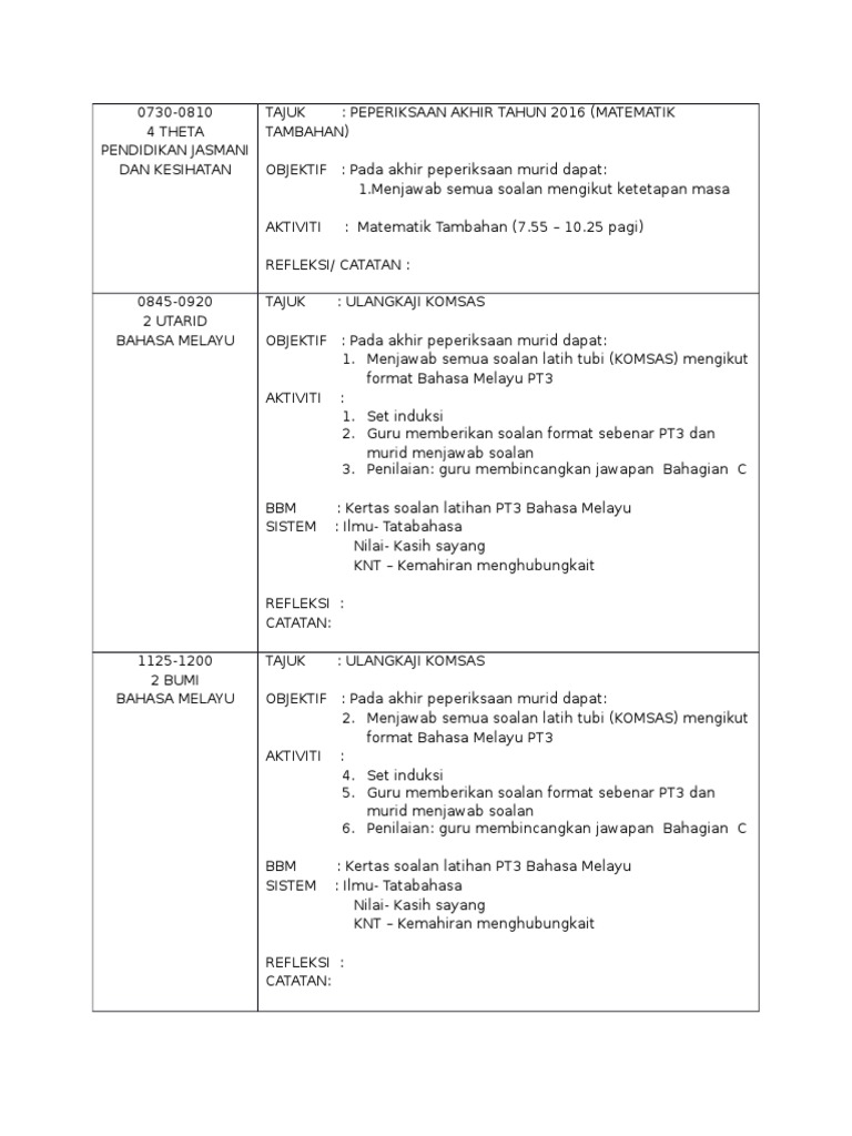 Rancangan Pengajaran Harian Minggu Peperiksaan Pdf